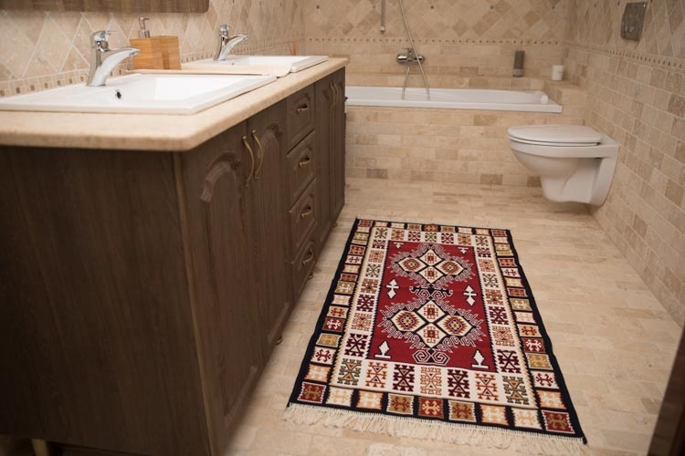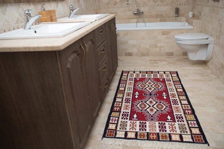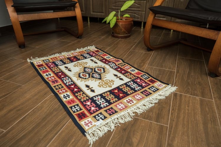 Covor din bumbac, roșu și albastru