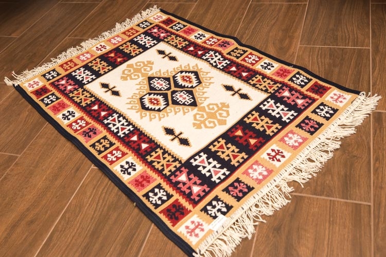 Covor din bumbac cu globuri, roșu și albastru