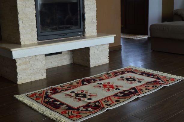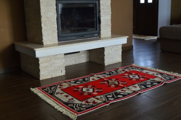 Covor din bumbac, romburi, roșu cu albastru