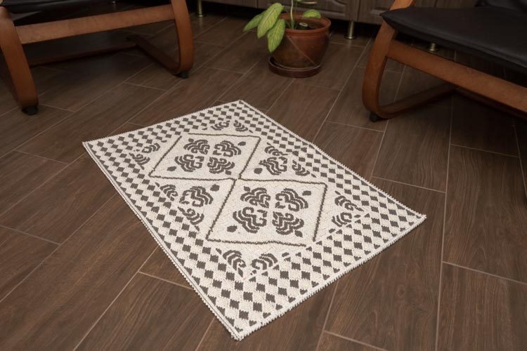 Covor din bumbac,gri cu alb, modern 60×125 cm