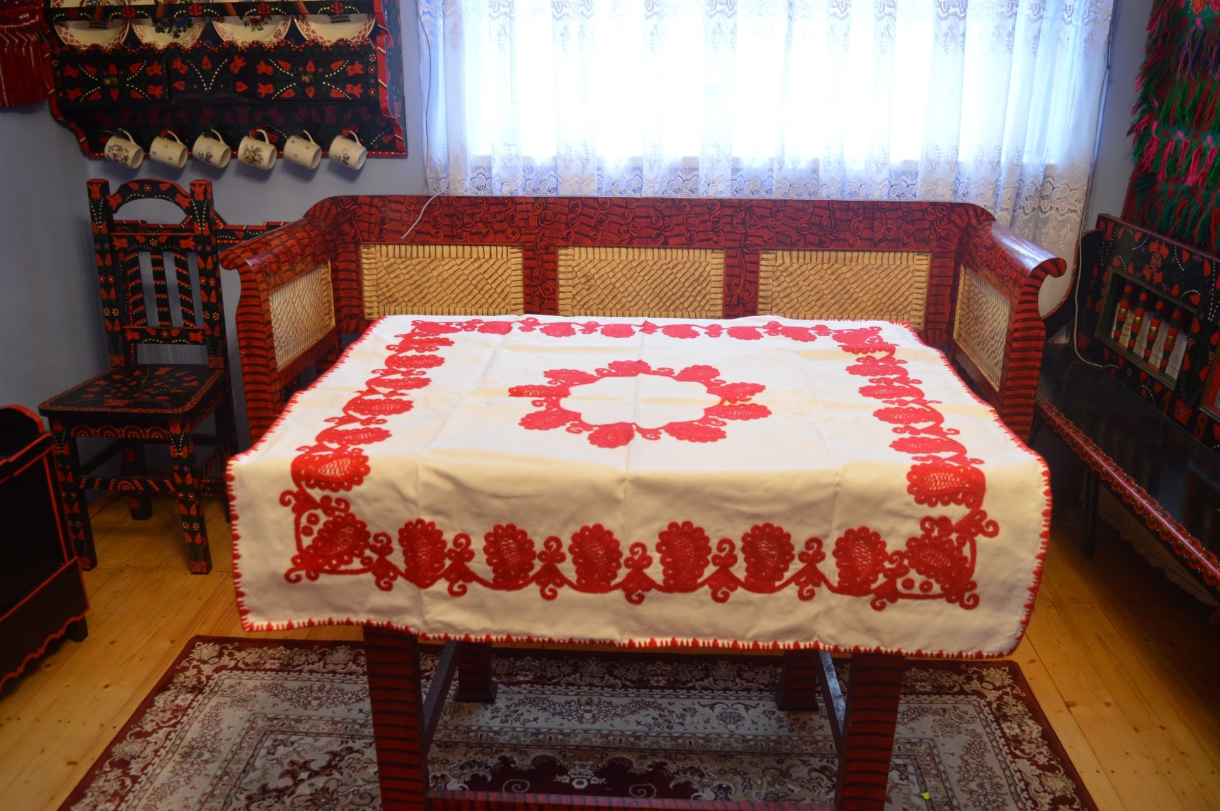 Be the first to review “Față de masă, cusut manual cu castravet, alb”