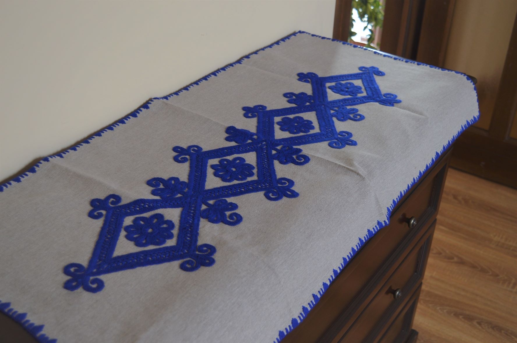 Be the first to review “Față de masă, cusut manual cu tabele, albastru”