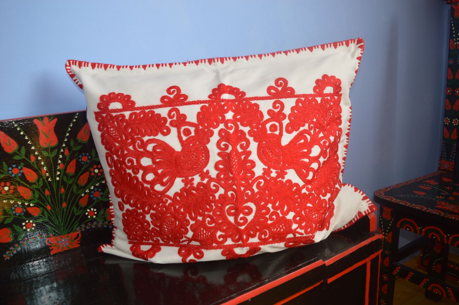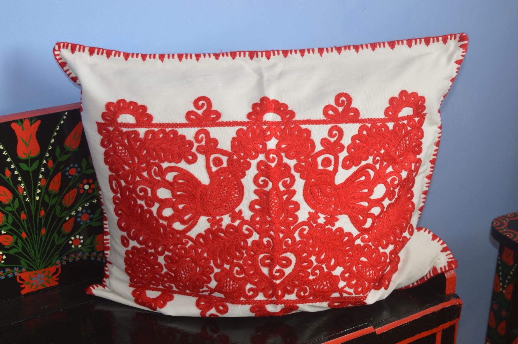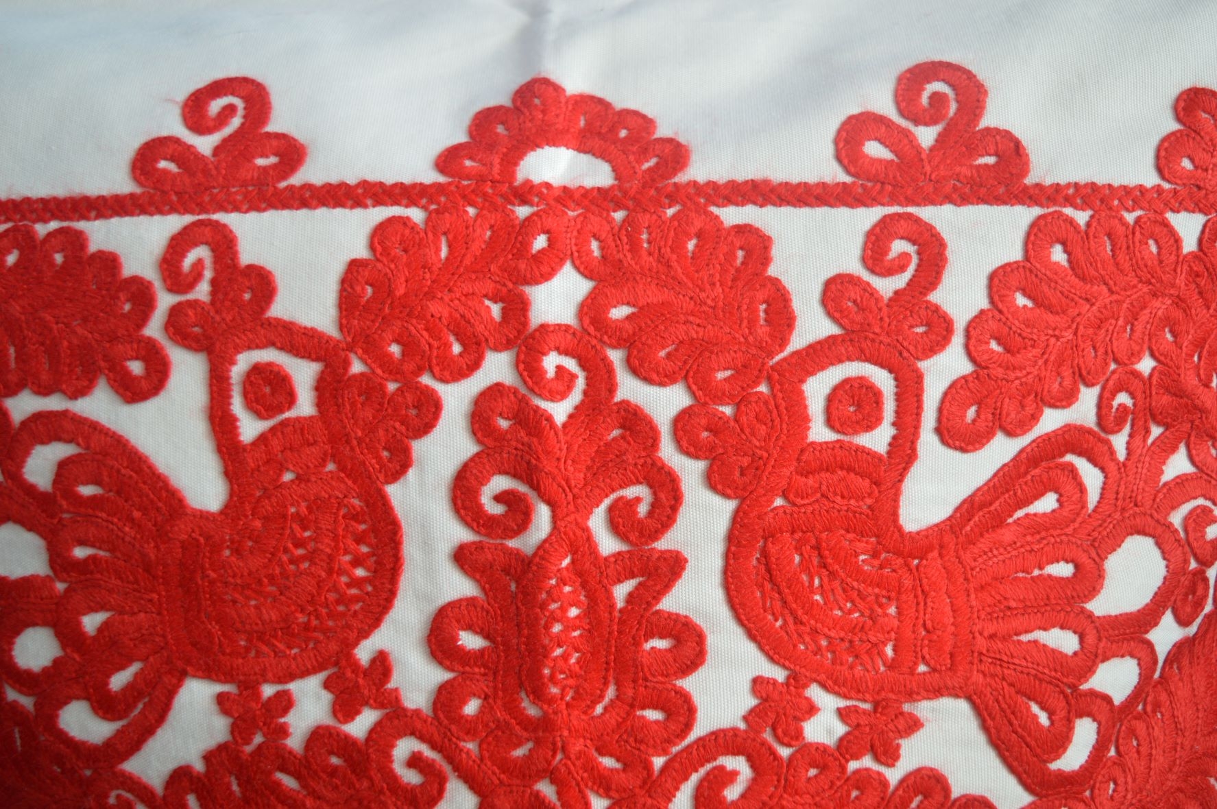 Be the first to review “Fețe de perne cusute manual, 2 pasăre, roșu”